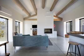 In de woonkamer vindt u de (zes persoons) eettafel, zithoek met houthaard en de open keuken met een gezellige bar. De keuken is compleet uitgerust en uiteraard voorzien van vaatwasser, koel-vriescombinatie, oven, magnetron, Nespresso koffiemachine etc.